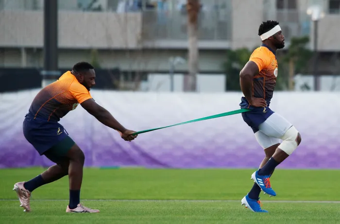 ABADLALI bamaSpringboks uSiya Kolisi noBeast Mtawarira bezilungiselela umdlalo wamanqamu ne-England. Isithombe: Reuters ABADLALI bamaSpringboks uSiya Kolisi noBeast Mtawarira bezilungiselela umdlalo wamanqamu ne-England. Isithombe: Reuters