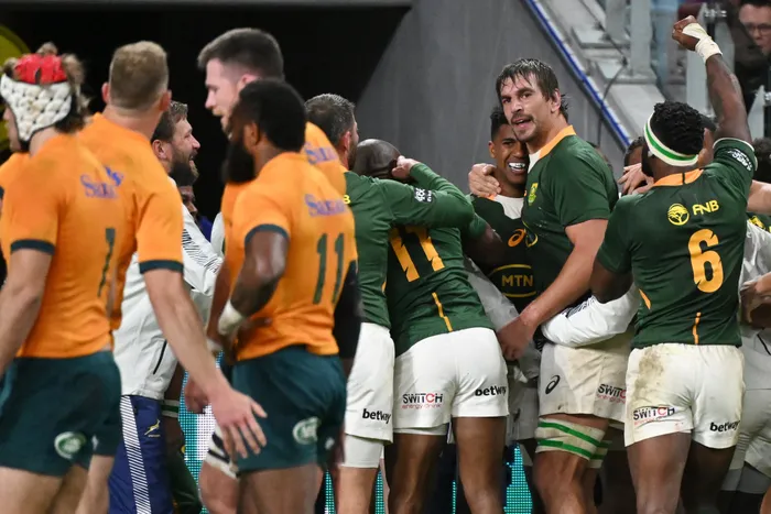 INJABULO kwabamaBhokobhoko bebuyisa izinduku kwi-Australia emdlalweni we-Rugby Championship ngempelasonto Isithombe: EPA