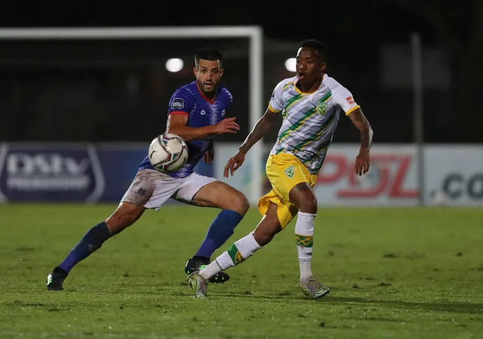 UPULE Mmodi weLamontville Golden Arrows ebanga ibhola noKeagan Ritchie weMaritzburg United emdlalweni weDStv Premiership, eHarry Gwala Stadium, ngoLwesihlanu Isithombe: BACKPAGEPIX of