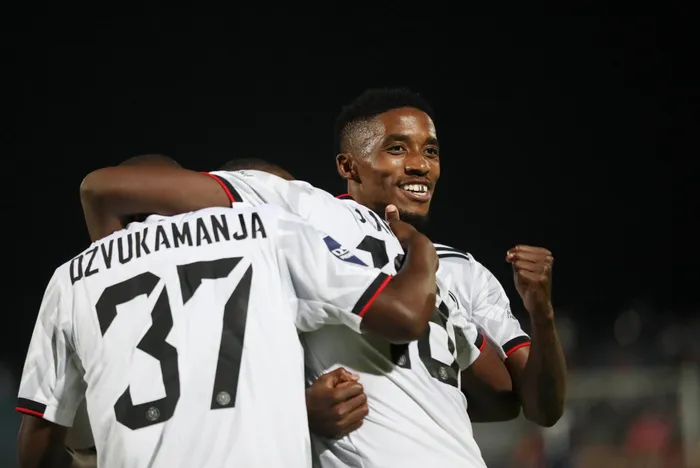 UMONAPULE Saleng ejabulela elinye lamagoli nozakwabo uTerrence Dzvukamanja emdlalweni weDStv Premiership onqotshwe yileli lixebula iSwallows ngo 4-1, eDobsonville Stadium, eSoweto, ngoLwesihlanu Isithombe: BACKPAGEPIX