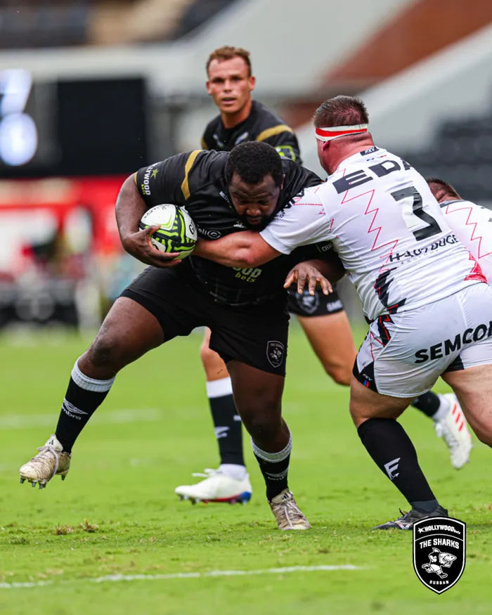 Isikhondlakhondla esidlala phambil kwiSharks, u-Ox Nche sishaye ama-try amabili bedlala ne-Oyonnax eHollywoodbets Kings Park, ngempelasonto Isithombe: SharksRugby/X