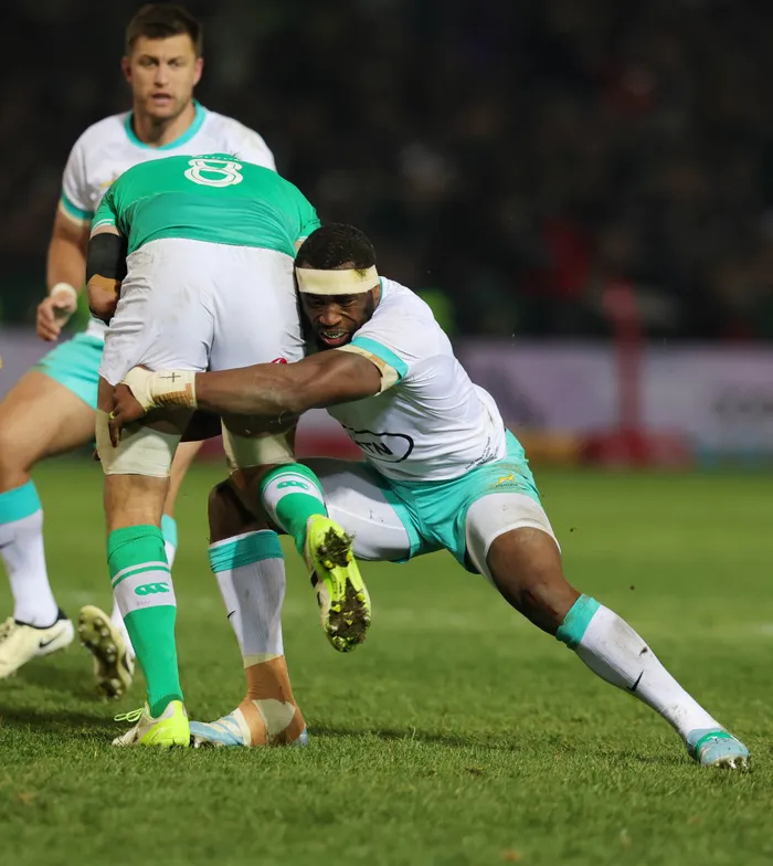 USIYA Kolisi, ongukaputeni wamaBhokobhokoko, ngomunye wabadlali abagqamile ngesikhathi elakuleli lihlula i-Ireland emdlalweni we-2024 Castle Lager Incoming Series eLoftus Versfeld, ePitoli, ngempelasonto edlule Isithombe:BACKPAGEPIX