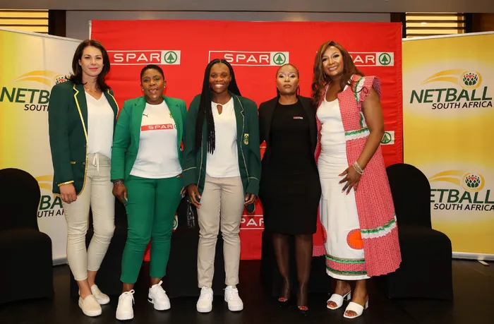 UMQEQESHI wama-Proteas uJenny van Dyk, isikhulu esiphezulu se-Netball South Africa uModiegi Komane, ukaputeni wama-Proteas, uKhanyisa Chawane, uMpudi Maubane wakwa-Spar nomengameli weNetball South Africa, uCecilia Molokwane Isithombe: SITHUNYELWE