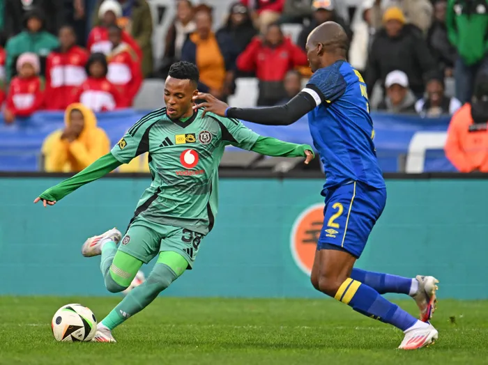 URELEBOHILE Mofokeng we-Orlando Pirates, ubeyiphela endlebeni kuThamsanqa Mkhize weCape Town City, bedlala kowomlenzeni wokuqala kowandulela owamanqamu weMTN8, eCape Town Stadium ngoLwesithathu ebusuku Isithombe: BACKPAGEPIX