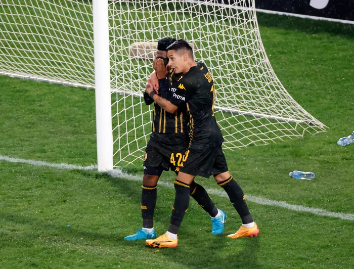 ABADLALI beKaizer Chiefs uMduduzi Shabalala noGaston Sirino bebhiyozela igoli ngesikhathi bebhekene neMarumo Gallants emdlaweni weBetway Premiership abagcine bewunqobile eFree State Stadium, eBloemfontein, ngoMgqibelo ebusuku Isithombe:BACKPAGEPIX