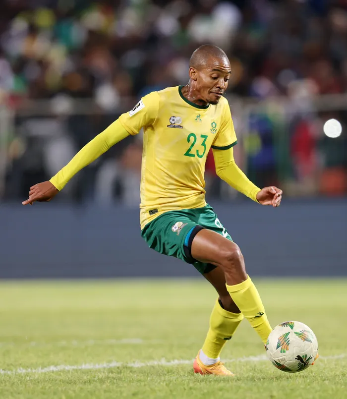UTHAPELO Morena umdlali weBafana Bafana, ungomunye wasebemnkantshubomvu okuzothenjelwa kubona ukunqoba iCongo-Brazzaville, kowakusihlwa wokuhlungela i-Africa Cup of Nations, eNelson Mandela Bay, eGqeberha Isithombe: BACKPAGEPIX