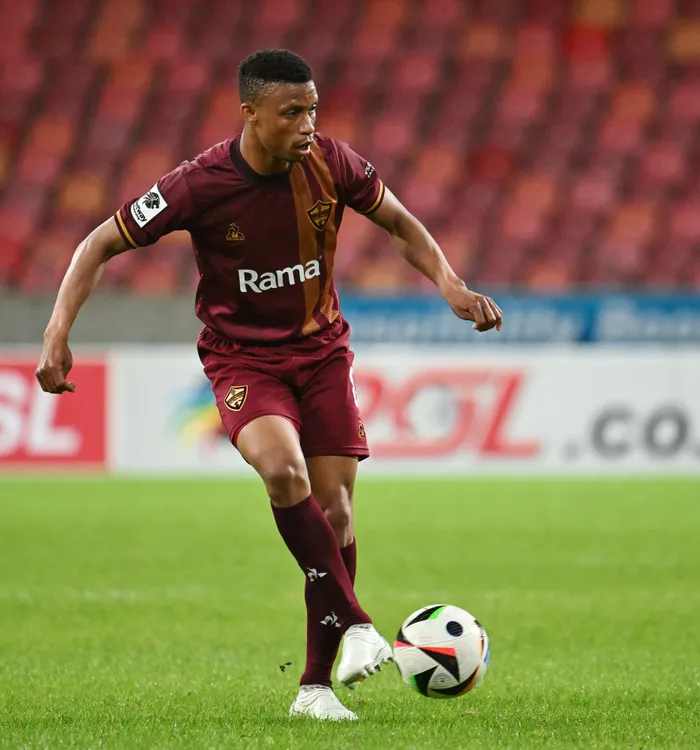 INJINI yeStellenbosch, uSihle Nduli, Ihlalelwe wumsebenzi wokuhlakaza iminyakazo yeRS Berkane abazobhekana nayo emdlalweni weCaf Confederation Cup eMoses Mabhida Stadium, eThekwini, kusasa ntambama Isithombe:BACKPAGEPIX