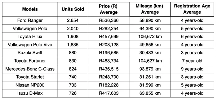 Ucwaningo lwe-AutoTrader lwezimoto ezingamasekeni ezidayise kakhulu KwaZulu-Natal ngonyaka odlule wonke