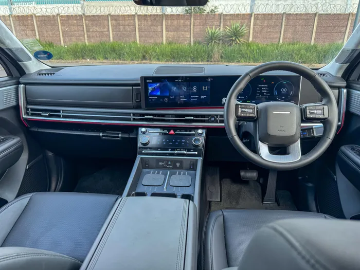 Ngaphambili kune-touchscreen enkulu oxhuma khona iselula nge-Apple CarPlay/Android Auto ngaphandle kwentambo.