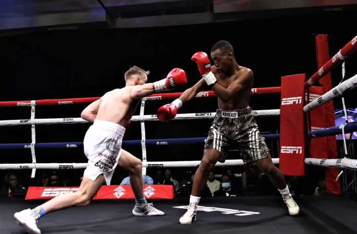 UKHANYISANI Mbokazi (kwesokudla) ebhekene noCayden Truter ngoJuni eGauteng Isithombe: ESPN FACEBOOK