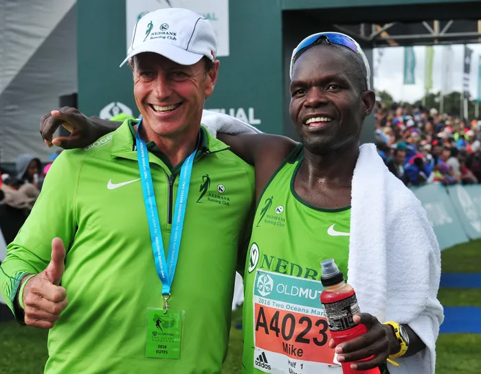 UNICK Bester, imenenja yeNedbank Running Club, noMike Fokoroni kwi-56km 2016 Two Oceans Marathon, eKapa Isithombe: BACKPAGEPIX