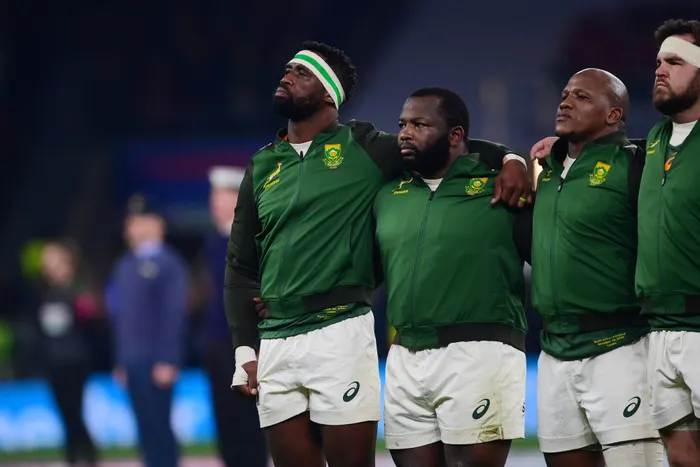 LAPHA ukaputeni wamaBhokobhoko, uSiya Kolisi, uthathwe emdlalweni weqembu lesizwe enabanye ozakwabo abamnyama, u-Ox Nche noBongi Mbonambi Isithombe: BACKPAGEPIX