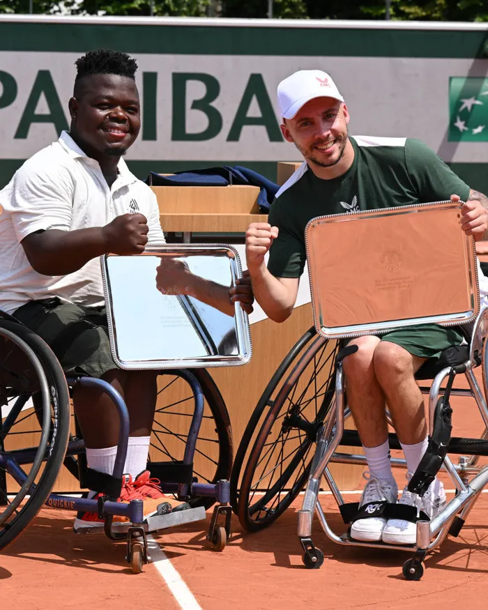 UDONALD Ramphadi wakuleli no-Andy Lapthorne waseBritain ngemuva kokunqoba isicoco se-French Open kwi-wheelchair tennisIsithombe: ITFTENNIS TWITTER