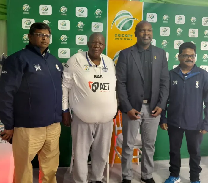 KUSUKELA kwesokunxele uRanjin Nirghin oyilungu lebhodi yeKZN Inland Cricket Union, imeya yoMasipala uMsunduzi uMzimkhulu Thebolla, umqondisi weCricket South Africa u-Enoch Nkwe, noJason Sathiaaseelan oyisikhulu esiphezulu kwiKZN Inland Cricket Union kwethulwa iMen’s Domestic Cricket , eMgungundlovu, ngoMgqibelo Isithombe: SIBUSISO MDALOSE