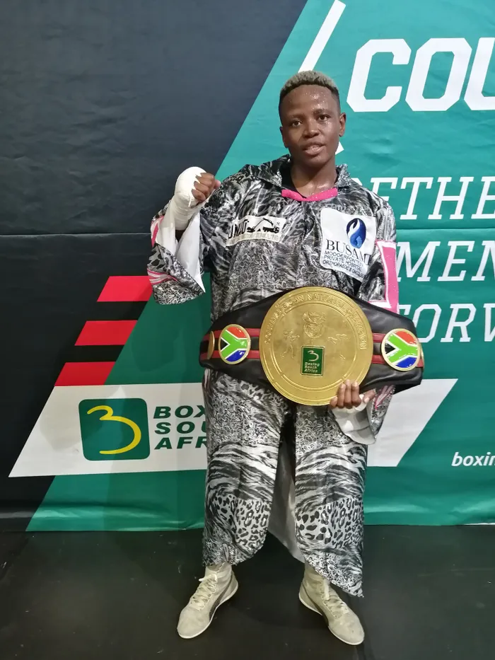 UMPETHA wesifazane kwi-SA Middleweight, uMapule Ngubane, ngomunye wabashayisibhakela abakhombise ukudlondlobala ngo-2023 Isithombe: ZAKHELE XABA