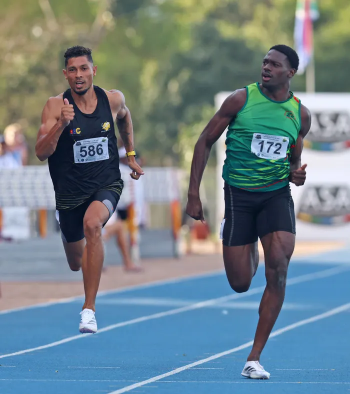 UBENJAMIN Richardson (kwesokudla) edlula uWayde van Niekerk kowamanqamu ka-200m kuma-ASA Senior Track & Field Championships asongwe ngempelasonto ebeseMsundunzi Athletics Stadium, eMgungundlovu Isithombe: BACKPAGEPIX