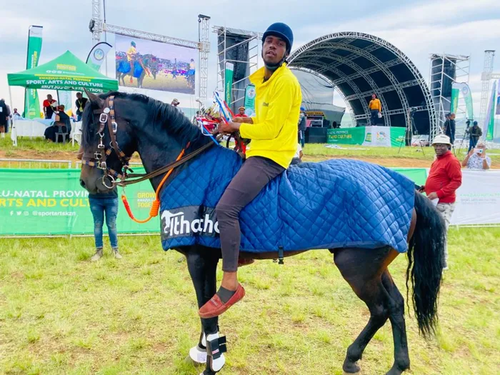UTHEMBISA ukuvikela isicoco seNkandla May Horse Racing, uSphamandla Gama ongumgibeli wehhashi lodumo uNxakanxaka.