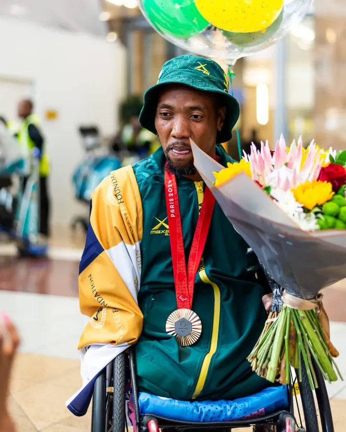 Akukakapheli sikhathi esingakanani kade kujatshulelwa ukubuya kwakhe nendondo yethusi kumaParalympic Games abeseParis, eFrance. Wayinqoba kwabadlala ngababili ebambisene noDonald Ramphadi waseTzaneen, eLimpopo.