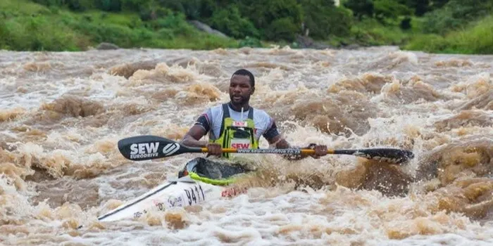 LUSONGWE ngenothi eliphezulu usuku lokuqala lweDusi Canoe Marathon ngoLwesine, ingqwele yalo mjaho kwabesilisa, u-Andy Birkett, iphuma phambili ihlelwe ezithendeni yinsephe uSbonelo Khwela, olale isibili.
