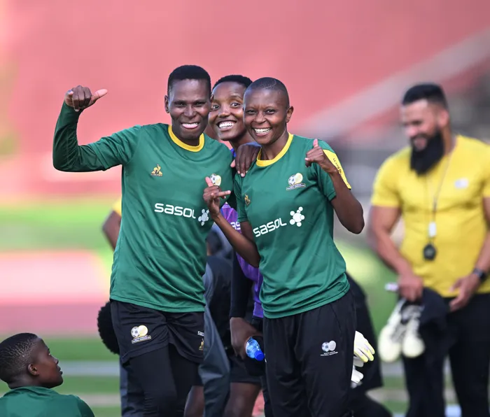 OMAKADEBONA beBanyana Banyana, uNoko Matlou noNompumelelo Nyandeni, nonozinti u-Andile Dlamini (ongemuva), bezilolongela imidlalo yobungani neMalawi.