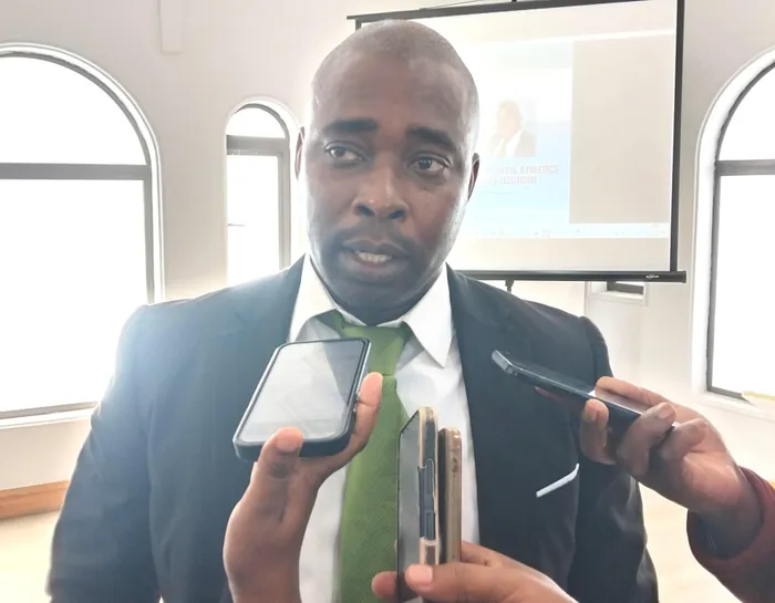 UMANDLA Mngomezulu oyiphini likamengameli we-KZN Athletics ekhuluma nabezindaba ngenkathi ethula umqulu wakhe wokhetho lobuholi be-KZNA oluzoba ngenyanga ezayo