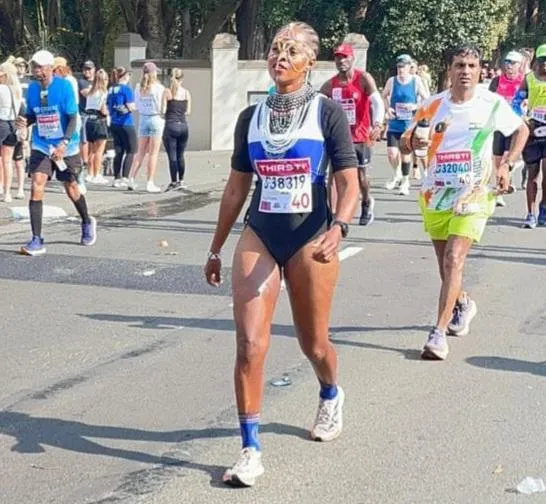 Engxoxwenii ekhethekile neSolezwe, uNgxishe ogijimela ukuzigcina engumqemane, ukubeke kwacaca ukuthi inhloso yokugijima kwakhe egqoke ngale ndlela ethatha amehlo yingoba eqwashisa ngesihlava sokuhlukunyezwa kwabesifazane.