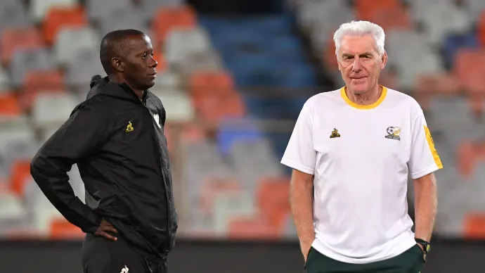 UMQEQESHI weBafana Bafana, uHugo Broos, nephini lakhe uHelman Mkhalele, usethubeni lokuba ngumqeqeshi wokuqala ukufaka leli qembu kwiNdebe yoMhlaba aphinde ahambe nalo