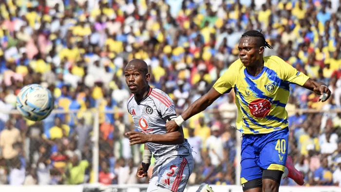 UNKOSINATHI Sibisi we-Orlando Pirates ebanga ibhola noRamos Wanet Kashala weSaint Eloi Lupopo koweCaf Champions League e-TP Mazembe Stadium, eLubumbashi, eDRC, izolo ntambama