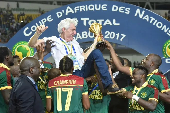 UMQEQESHI uHugo Broos ejabula nabadlali beCameroon emuva kokuwina i-Africa Cup of Nations behlula i-Egypt eGabon ngo-2017