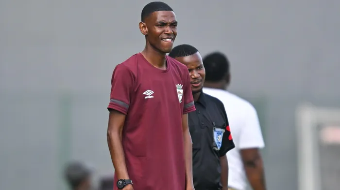 Isithombe UMQEQESHI woMkhambathi FC, uXolani Khumalo, ongakuthokozela ukubona ezakhe zihamba ibanga kwiNedbank Cup phezu kokukubeka eqhulwini nokuya kumaPlay-Offs kazwelonke e-ABC Motsepe League ekupheleni kwesizini
