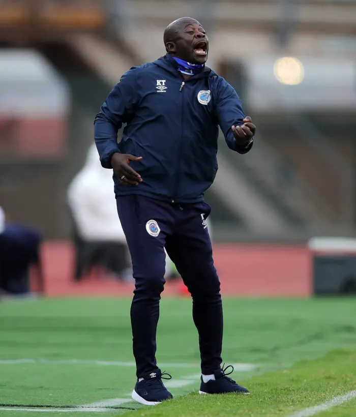 UMQEQESHI weSuperSport United uKaitano Tembo ukhala ngabadlali bakhe abalahla ibhola kalula nathi lokho kubaqhatha nezitha emidlalweni yabo yakamuva Isithombe: Backpagepix. Isithombe: Samuel Shivambu/BackpagePix