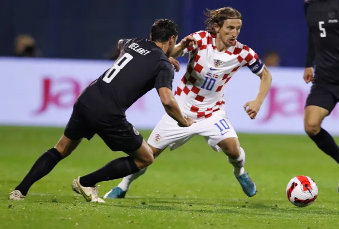 ULUKA Modric oyinjini yasesiswini nokaputeni weCroatia, udlula kuThomas Delaney weDenmark, kanti kubhekwe ukuba alihole ngempumelelo izwe ngoNovemba nangoDisemba, koweNdebe yoMhlaba yeFifa, eQatar Isithombe: EPA