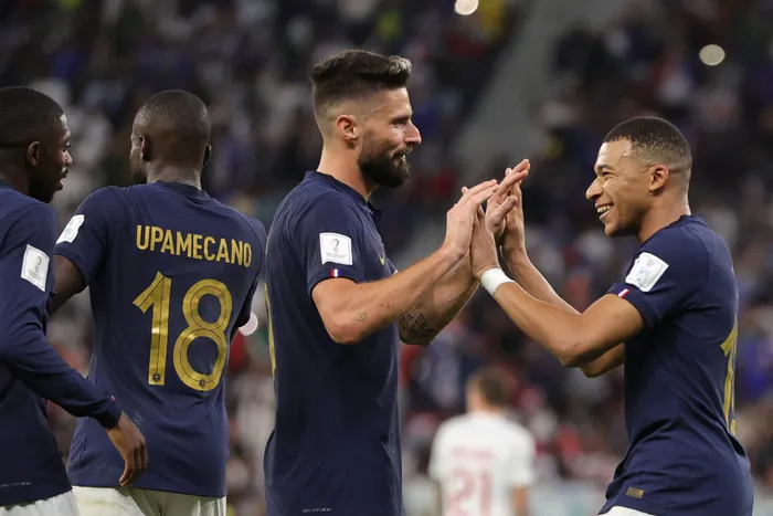 U-OLIVIER Giroud noKylian Mbappe abashaye amagoli eFrance ngesikhathi behlula iPoland emdlalweni weLast 16 yeNdebe yoMhlaba e-Al Thumama Stadium, eDoha, eQatar Isithombe: EPA