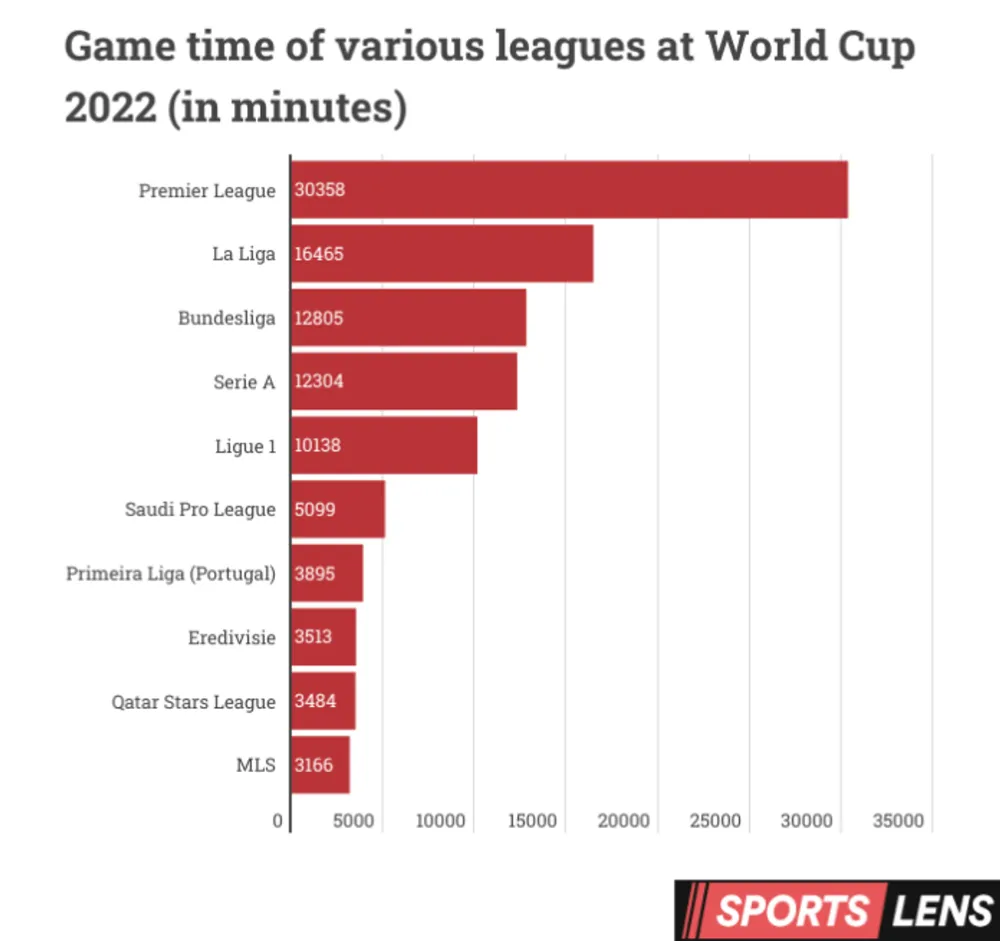 Ngokocwaningo olwenziwe yi-website iSportsLens.com, abadlali bePremier League badlale imizuzu engu-30 358 eQatar.