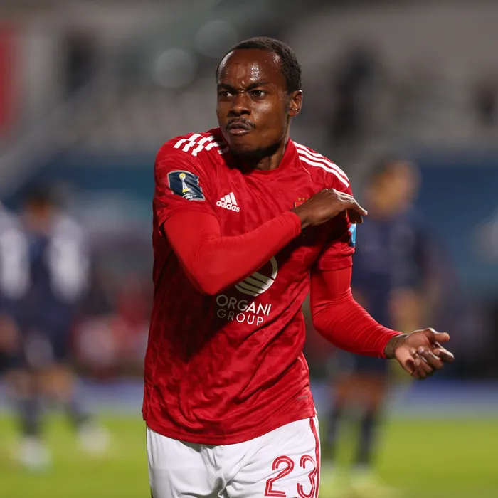 UBHALE kabusha umlando weNingizimu Afrika umgadli weBafana Bafana, uPercy Tau, eshayela i-Al Ahly igoli kwi-2023 Fifa Club World Cup eqhubeka eMorocco Isithombe: BACKPAGEPIX