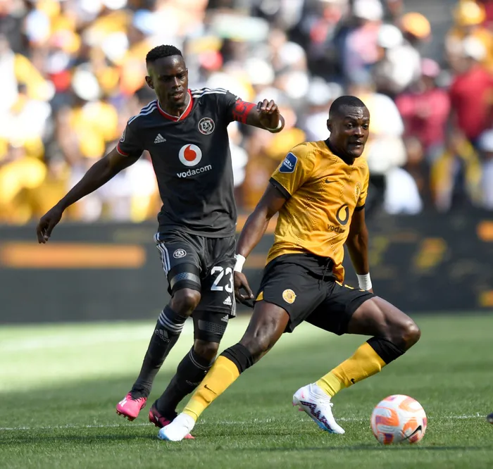 IMPI phakathi kuka-Innocent Maela noChristian Saile weKaizer Chiefs, igcine ihambe nokaputeni we-Orlando Pirates engawuqedi umdlalo ngenxa yekhadi elibomvu Isithombe: BACKPAGEPIX