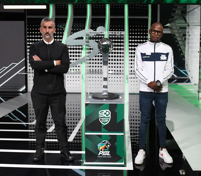 UMQEQESHI weDondol Stars, uVincent Rammoni ogqoke okumhlophe, uthe ngelinye ilanga ufisa ukuzibona ehlezi esihlalweni esishisayo okuhlezi kuso uJose Riveiro ofake ezimnyama Isithombe: BACKPAGEPIX