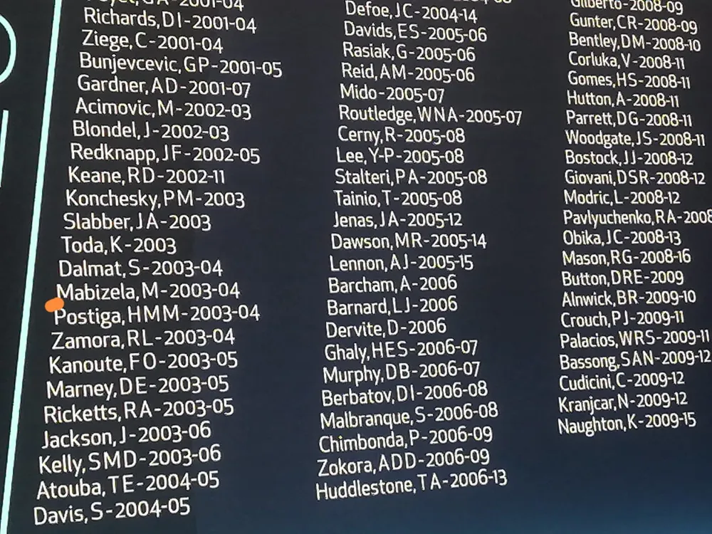 Ngaphandle kukaMabizela, kwabaseMzansi kukhona noSteven Pienaar odlale kuleli qembu ngo-2011 esuka kwi-Everton. Kwabase-Afrika kukhona uDidier Zokora wase-Ivory Coast, Emmanuel Adebayor waseTogo, Frederick Kanoute waseMali nabanye. Ngaphandle kokubhala amagama abadlali, phansi kuneziqeshana zenkundla endala ezigcinelwe ukukhumbula iWhite Hart Lane. Kwenye ingxenye okugcinwe kuyona umlando weqembu kukhona izindebe zakudala iqembu elaziwina, amajezi amabhola ayesetshenziswa eminyakeni edlule.