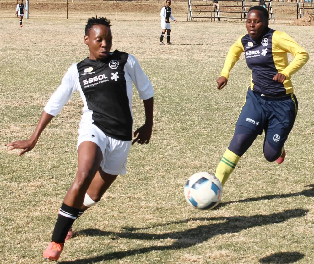 UFANA nowamanqamu umdlalo weNewcastle Ladies (yejezi elimnyama nokumhlophe), neSunflower WFC (yejezi eliphuzi nokuluhlaza) wokucacisa ngeqembu elizodla umhlanganiso kusasa ntambama ngaphansi kweStream A yeKZN Sasol League, osoSizweni Stadium, eNewcastle Isithombe: SIBUSISO MDLALOSE