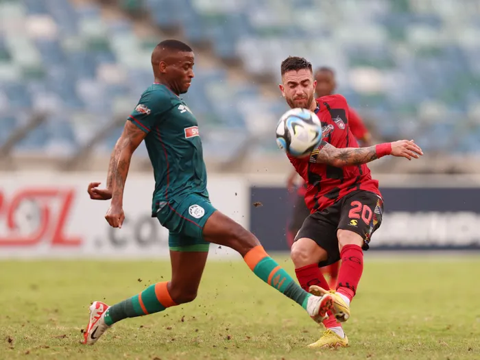 UMojela uthole ibhola ebelivezwe nguMpho Mvelase, wagijima nalo njalo waze wayongena ebhokisini, ngaphambi kokushaya umgundatshani omshiye elele unozinti waMaZulu, uVeli Mothwa.