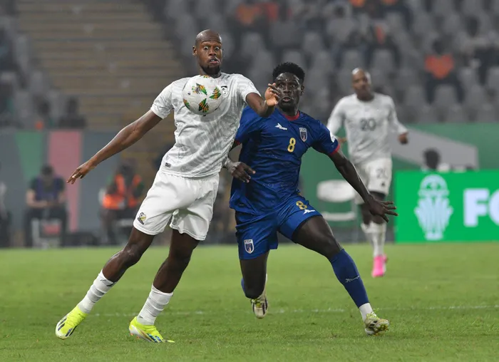 U-EVIDENCE Makgopa weBafana Bafana eshikilisana noJoao Paulo Fernandes weCape Verde kowe-quarterfinal ye-Africa Cup of Nations, ogcine unqotshwe yiBafana sekukhahlelwa amaphenathi Charles Konan Stadium, e-Ivory Coast, ngoMgqibelo ebusuku Isithombe: BACKPAGEPIX