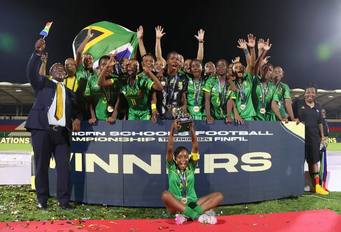 IQEMBU leNingizimu Afrika lamantombazane libe ngompetha be-Caf African School Football Championship ebibanjelwe eTanzania Isithombe: BACKPAGEPIX