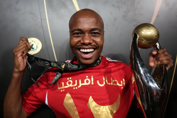 UMGADLI wakuleli, uPercy Tau, ejabulela ukudla isicoco seCaf Champions League ne-Al Ahly ngoMgqibelo Isithombe: BACKPAGEPIX