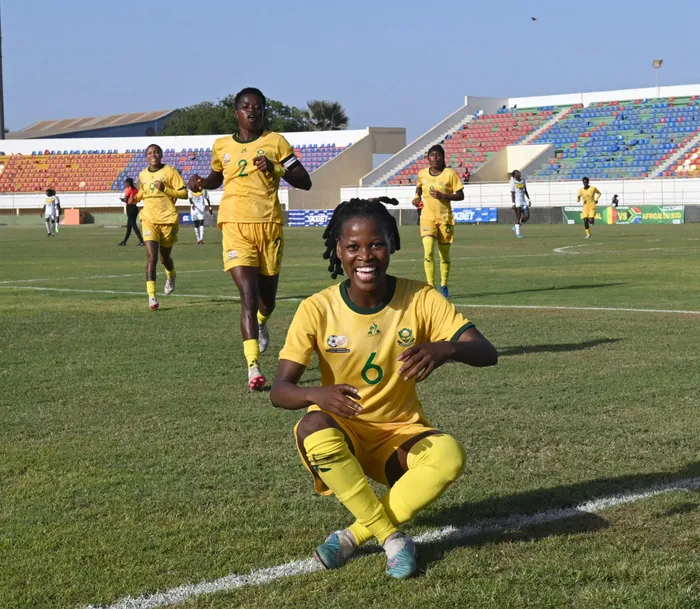 UNOXOLO Cesane weBanyana Banyana ngemuva kokushaya igoli lesibili behlula iSenegal kowobungni eStade Lat Dior, eThies ngoLwesibili ebusuku Isithombe: BACKPAGEPIX