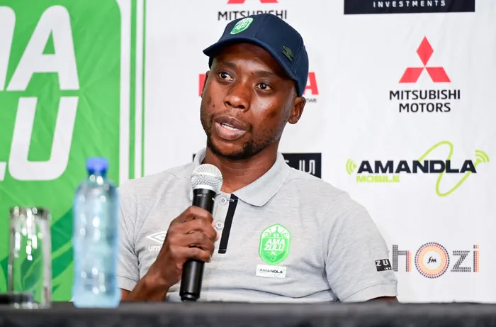 UBEN Motshwari waMaZulu FC ekhuluma nezintatheli izolo ngamalungiselelo abo okubhekana neKaizer Chiefs emdlalweni weBetway Premiership Isithombe: BACKPAGEPIX