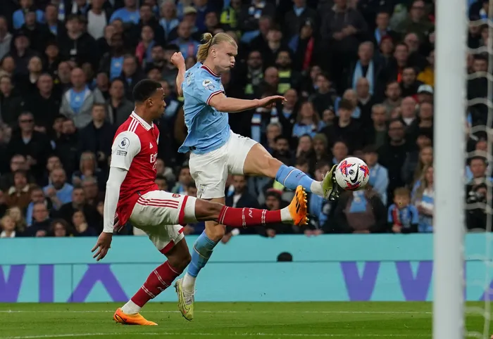 UMGADLI weManchester City ovutha uphondo, u-Erling Haaland, kubhekwe athwalise kanzima izitobha ze-Arsenal emdlalweni we-English Premier League obhekwe ngabomvu, kusasa ntambama, e-Etihad Stadium, eManchester Isithombe: EPA
