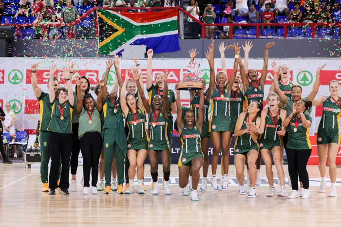 IQEMBU lesizwelabesifazane le-netball libhiyozela ukunqoba iMalawi ngo 3-0 ochungechungeni lweSPAR Challenge e-Ellis Park Arena Isithombe: SITHUNYELWE