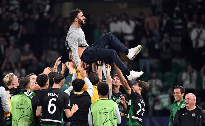 BEKUYINJABULO yodwa kwabeSporting Lisbon emuva kokuxebula iManchester City emdlalweni we-UEFA Champions League obekungowokugcina ekhaya womqeqeshi uRuben Amorim oseyoqeqesha iManchester United e-England Isithombe: BACKPAGEPIX