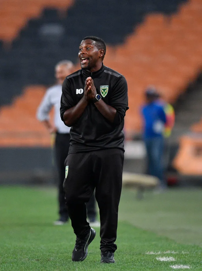 UMQEQESHI weLamontville Golden Arrows, uMabhuti Khenyeza, oncome ukulwa kwabadlali bakhe bebuya belandela emuva bagcina benqobe iRoyal AM kowabakhaya baseKZN weBetway Premiership, eHarry Gwala Stadium, ngoLwesithathu Isithombe: BACKPAGEPIX