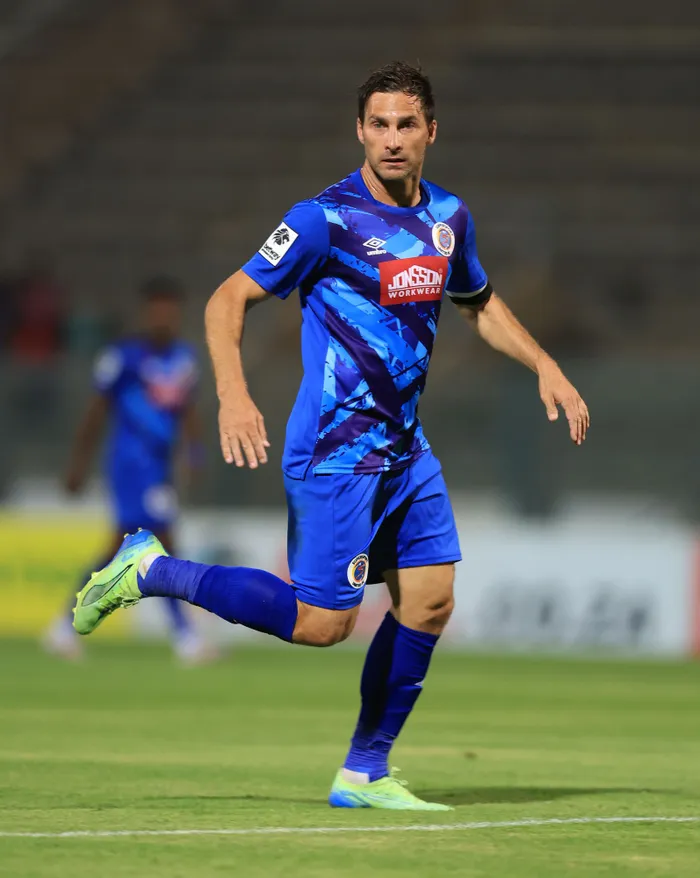 UMGADLI weSuperSport United, uBradley Grobler, utakule leli qembu eshaya igoli lokunqoba ngesikhathi libhekene neRichards Bay FC emdlalweni weBetway Premiership eKing Zwelithini Stadium, eMlaza Isithombe: BACKPAGEPIX